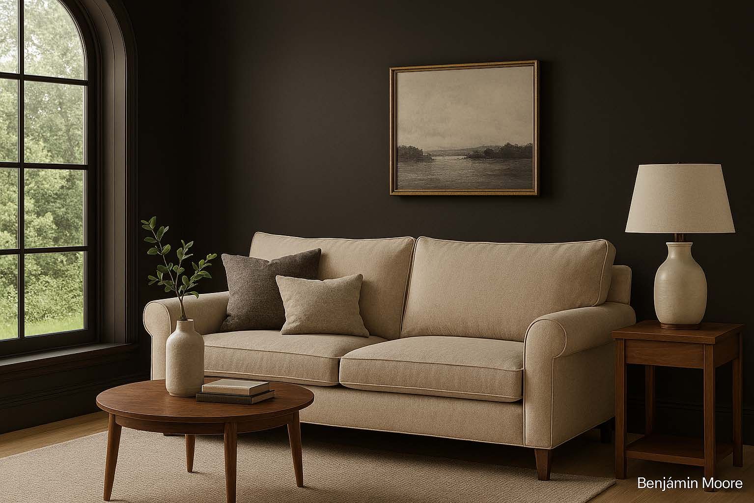 is a rich, espresso charcoal-brown bringing dramatic elegance to any accent wall.