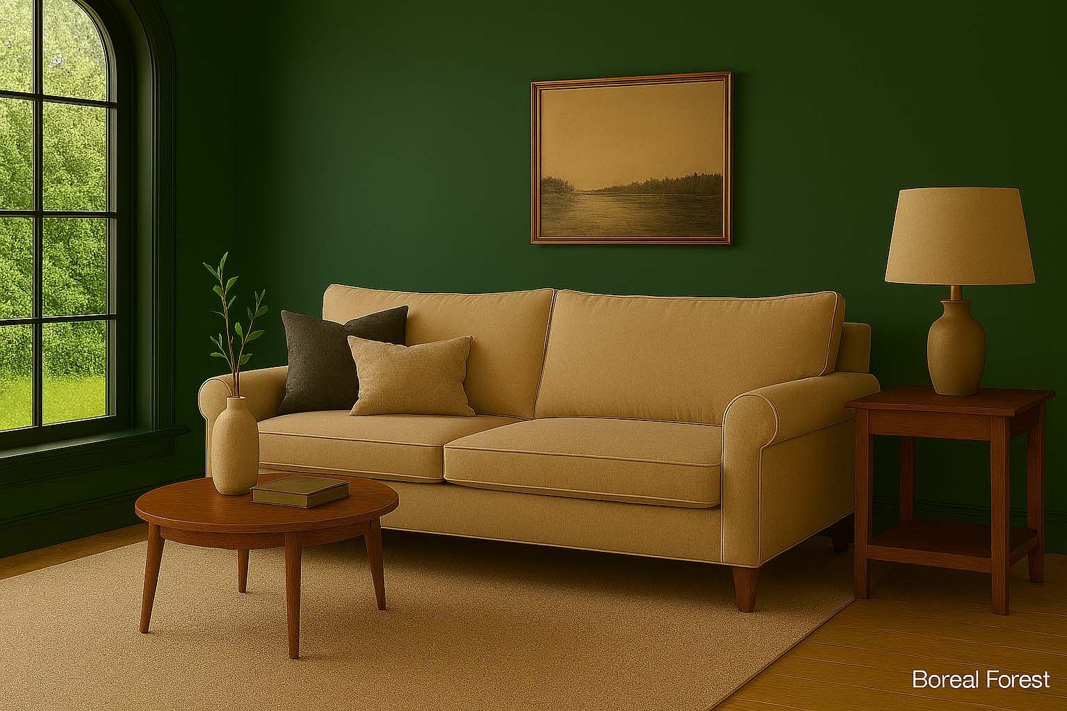 A deep, evergreen shade that evokes woodland calm.